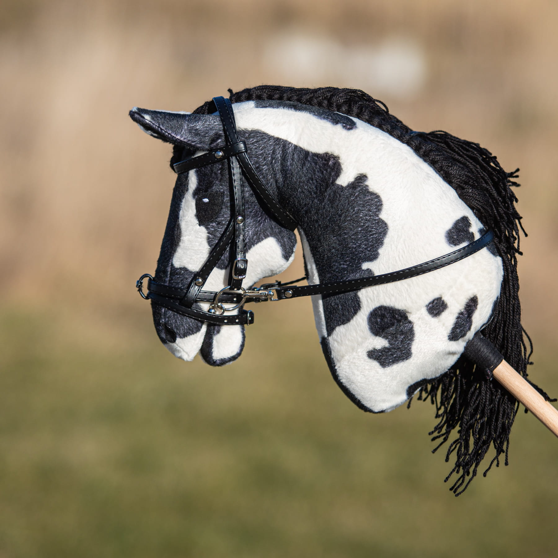 Dieses Zaumzeug für Hobbypferde, erhältlich in den Größen A3 und A4, ist aus hochwertigem Öko-Leder gefertigt. Verziert und mit Nieten verstärkt, verbindet es Haltbarkeit mit elegantem Look. Jedes Stück wird in präziser Handarbeit in der Europäischen Union gefertigt. Erhältlich in vier Farben, ist es die perfekte Ergänzung zur Ausstattung Ihres Hobbypferdes.